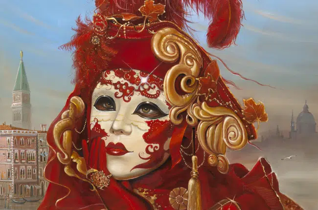 This series presents a striking departure — a surreal, dreamlike vision of Venice during its carnival season. The paintings focus on the mask, both as a symbol and a mystery. Levin’s fascination with Venice began in 2002, when his early “Mask Collection” earned him a scholarship to the Venice Academy of Art. There, he refined his understanding of color harmony and composition. The resulting works blend Venetian elegance with his own introspective symbolism.